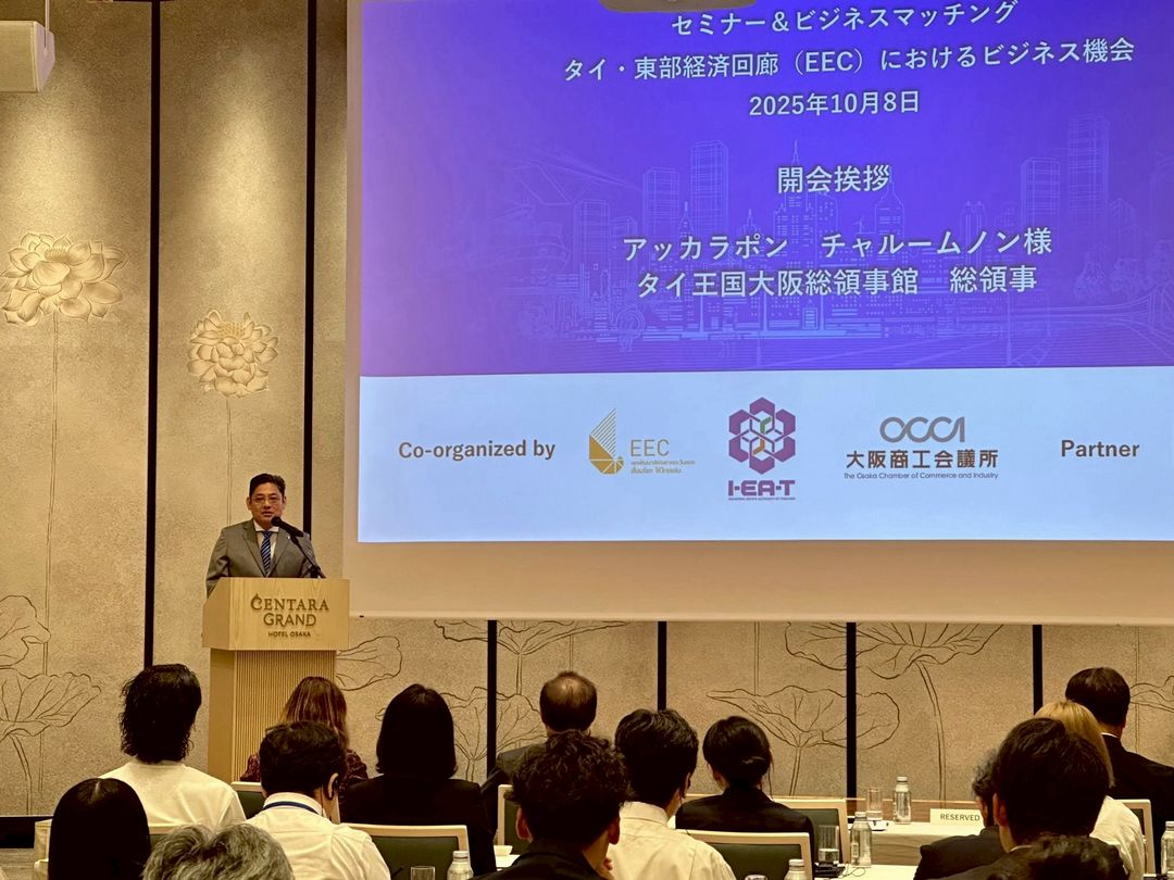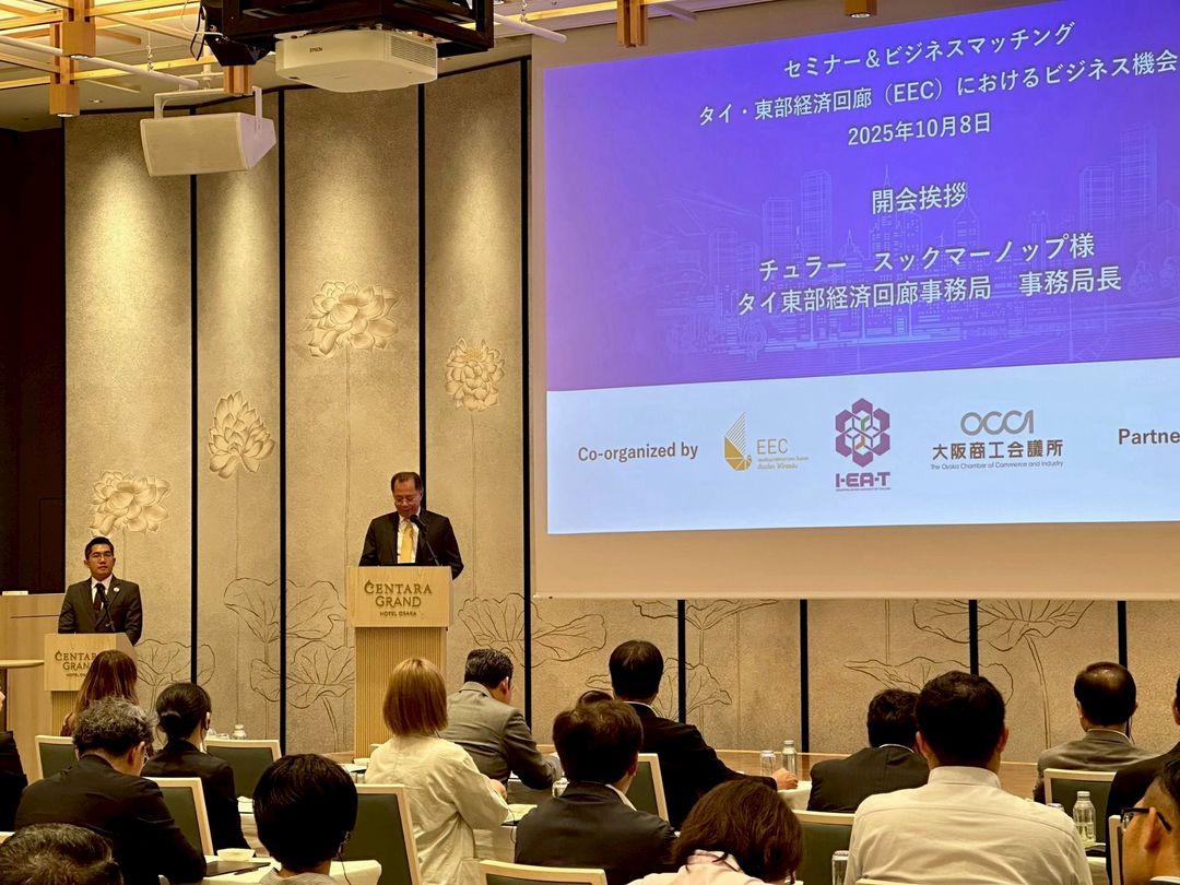 (ช่วงบ่าย) การจัดกิจกรรมสัมมนาและการจับคู่ธุรกิจ (Business Matching) นำโดย สกพอ. ร่วมกับ กนอ. และหน่วยงานพันธมิตร ส่งเสริมการลงทุนในประเทศไทย พื้นที่ EEC และนิคมอุตสาหกรรม โดยได้รับกล่าวเปิดกิจกรรมจาก ดร.จุฬา สุขมานพ เลขาธิการคณะกรรมการนโยบายฯ EEC, นายอัครพงศ์ เฉลิมนนท์ กงสุลใหญ่ ณ นครโอซากา, Mr. MORISHIMA Hiromitsu, Chairperson of the International Business Committee, Osaka Chamber of Commerce and Industry (OCCI) จากนั้นเป็นการบรรยาย ดังนี้