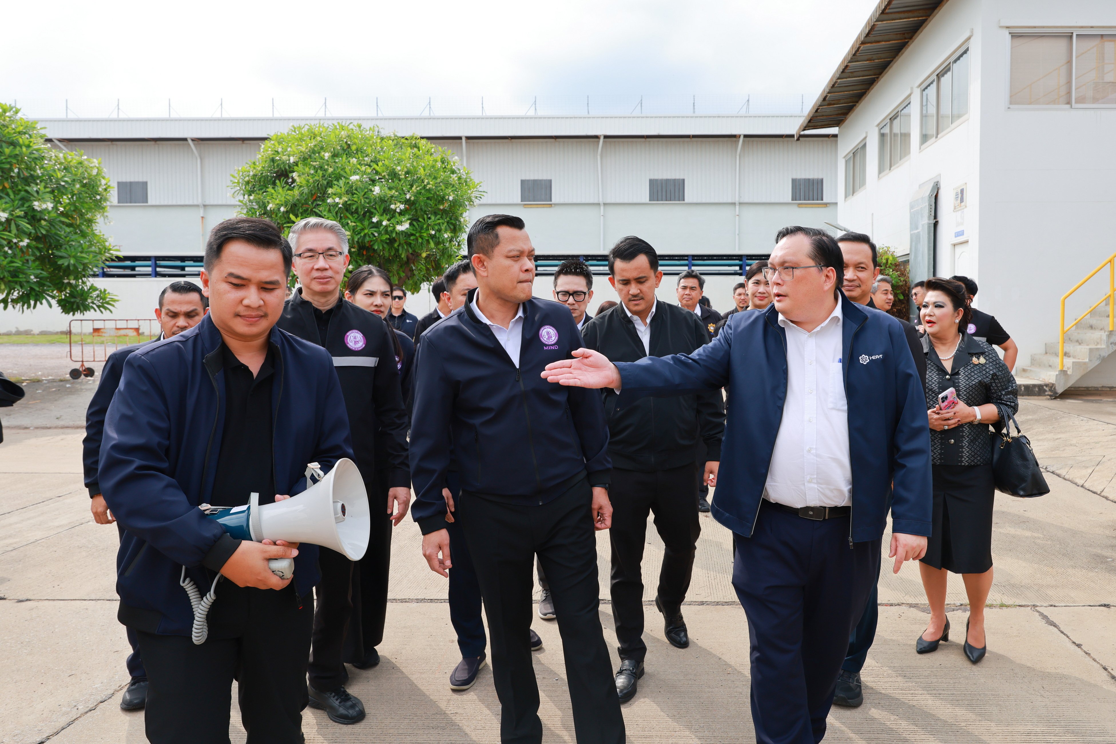 วันที่ 5 พ.ย. 2568 - นายธนกร วังบุญคงชนะ รัฐมนตรีว่าการกระทรวงอุตสาหกรรม ลงพื้นที่ตรวจราชการ เพื่อติดตามการดำเนินงานและมอบนโยบาย นิคมอุตสาหกรรมสินสาคร จ.สมุทรสาคร พร้อมด้วย นายณัฐพล รังสิตพล ปลัดกระทรวงอุตสาหกรรม ร้อยตำรวจเอก เขตรัฐ ชาญศิลป์ รองผู้ว่าราชการจังหวัด รักษาราชการแทนผู้ว่าราชการจังหวัดสมุทรสาคร นายฐาปกรณ์ กุลเจริญ เลขานุการรัฐมนตรีว่าการกระทรวงอุตสาหกรรม นายพลวศุตม์ มหาเอี่ยมศิริ ประธานคณะที่ปรึกษาของรัฐมนตรีว่าการกระทรวงอุตสาหกรรม นางสาวจิรัฐิติกาล จันทราทิพย์ ประจำสำนักเลขาธิการนายกรัฐมนตรี คณะผู้บริหารกระทรวงอุตสาหกรรม และอุตสาหกรรมจังหวัดสมุทรสาคร ร่วมลงพื้นที่ โดยมีนายสุเมธ ตัังประเสริฐ ผู้ว่าการ การนิคมอุตสาหกรรมแห่งประเทศไทย (กนอ.) พร้อมนางสาวนวรัตน์ รอดประเสริฐ ผู้ช่วยผู้ว่าการ (ปฏิบัติการ 1) นางสาวกฤษฎาพร บุญอยู่ ผู้อำนวยการสำนักงานนิคมฯสมุทรสาคร นางสาววรารัตน์ ทองเต็มถุง ผู้อำนวนการสำนักงานนิคมฯสินสาคร และดร.ภทรินทร์ ลือกาญจนวนิช รองประธานกรรมการบริหาร บริษัท ซี.เอ.เอส.แอสแซท จำกัด ให้การต้อนรับพร้อมกล่าวบรรยายสรุปภาพรวมการดำเนินการ