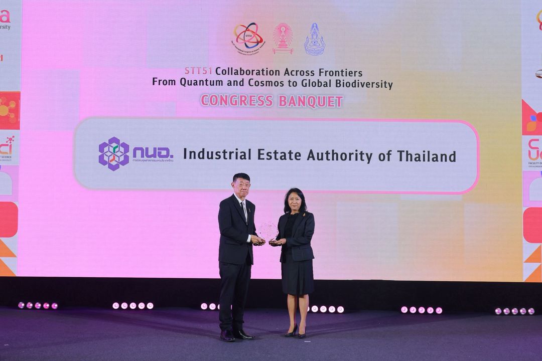 วันที่ 12 พฤศจิกายน 2568 - นายสุเมธ ตั้งประเสริฐ ผู้ว่าการ การนิคมอุตสาหกรรมแห่งประเทศไทย (กนอ.) มอบหมาย นางสาวปคุณดา ชั้นบุญ ผู้ช่วยผู้ว่าการ (สายงานผู้ว่าการ 2) เป็นผู้แทนเข้ารับโล่ผู้สนับสนุนการจัดประชุมวิชาการระดับนานาชาติ ครั้งที่ 51 The 51st International Congress on Science, Technology, and Technology-based Innovation (STT51) สำหรับงานดังกล่าว เป็นงานประชุมวิชาการนานาชาติด้านนวัตกรรม วิทยาศาสตร์ เทคโนโลยี และความร่วมมือข้ามพรมแดน อีกทั้งเนื่องในโอกาสเฉลิมฉลอง 50 ปีความสัมพันธ์ทางการทูตไทย–จีน โดยมีเวทีความร่วมมือระดับนานาชาติภายใต้หัวข้อ "Collaboration Across Frontiers: From Quantum and Cosmos to Global Biodiversity" เวทีสำคัญในการแลกเปลี่ยนความรู้ ความคิดสร้างสรรค์ นวัตกรรม จากนักวิจัย นักวิทยาศาสตร์และผู้เชี่ยวชาญทั่วโลก ครอบคลุมเรื่องของนโยบาย เทคโนโลยีสารสนเทศ โอกาสทางธุรกิจ ทั้งในภาคการเกษตร พลังงาน สาธารณสุข และภาคอุตสาหกรรม โดยงานครั้งนี้จัดโดย สมาคมวิทยาศาสตร์แห่งประเทศไทยในพระบรมราชูปถัมภ์ ร่วมกับคณะวิทยาศาสตร์ จุฬาลงกรณ์มหาวิทยาลัย ในวันที่ 11–13 พฤศจิกายน 2568 ณ คณะวิทยาศาสตร์ จุฬาลงกรณ์มหาวิทยาลัย
