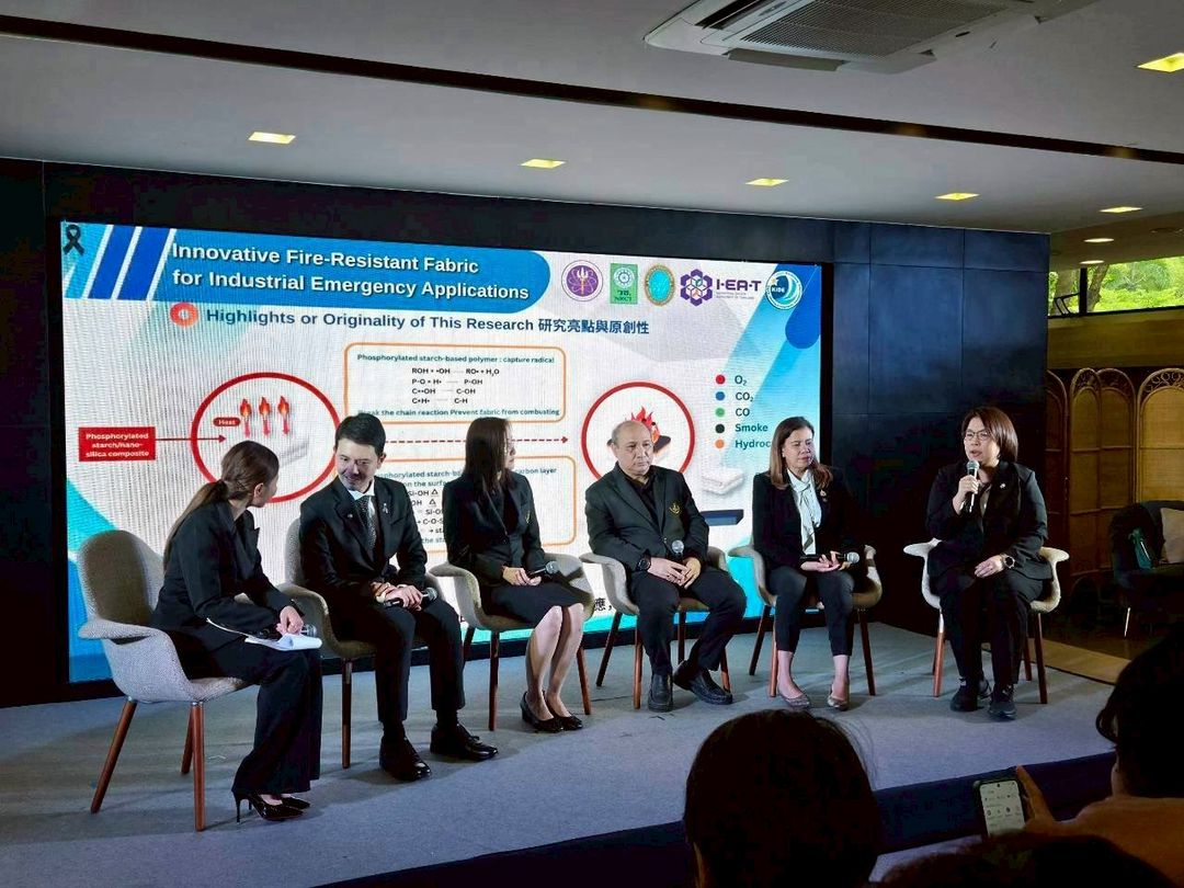 3. ผลงาน “นวัตกรรมผ้าทนไฟสำหรับเหตุฉุกเฉินในอุตสาหกรรม” (Innovation Fire-Resistant Fabric for Industrial Emergency Applications) (รางวัล NRCT Special Award และ รางวัลเหรียญทอง)