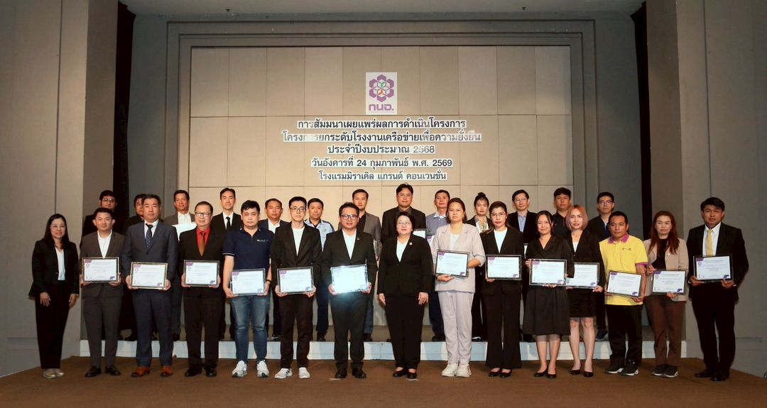 วันอังคารที่ 24 กุมภาพันธ์ 2569 เวลา 13.00 – 16.30 น. นายสุเมธ ตั้งประเสริฐ ผวก.กนอ. มอบหมายให้ นางบุปผา กวินวศิน รผก.พย. เป็นประธานเปิดงานสัมมนาเผยแพร่ผลการดำเนินโครงการยกระดับโรงงานเครือข่ายเพื่อความยั่งยืน ประจำปีงบประมาณ 2568 และมอบเกียรติบัตรให้แก่ "โรงงานเครือข่ายเพื่อความยั่งยืนของ กนอ." จำนวน 30 แห่ง ในวันอังคารที่ 24 กุมภาพันธ์ พ.ศ. 2569 เวลา 12.00-16.30 น. ณ ห้องแกรนด์ A ชั้น 4 โรงแรมมิราเคิล แกรนด์ คอนเวนชั่น กรุงเทพมหานคร โดยในงานสัมมนามีการแสดงบูธจากศูนย์เทคโนโลยีและวัสดุแห่งชาติ ด้านนวัตกรรมและเทคโนโลยีสมัยใหม่ในการเพิ่มประสิทธิภาพการผลิต และการบรรยายให้ความรู้ใน 3 หัวข้อ ได้แก่