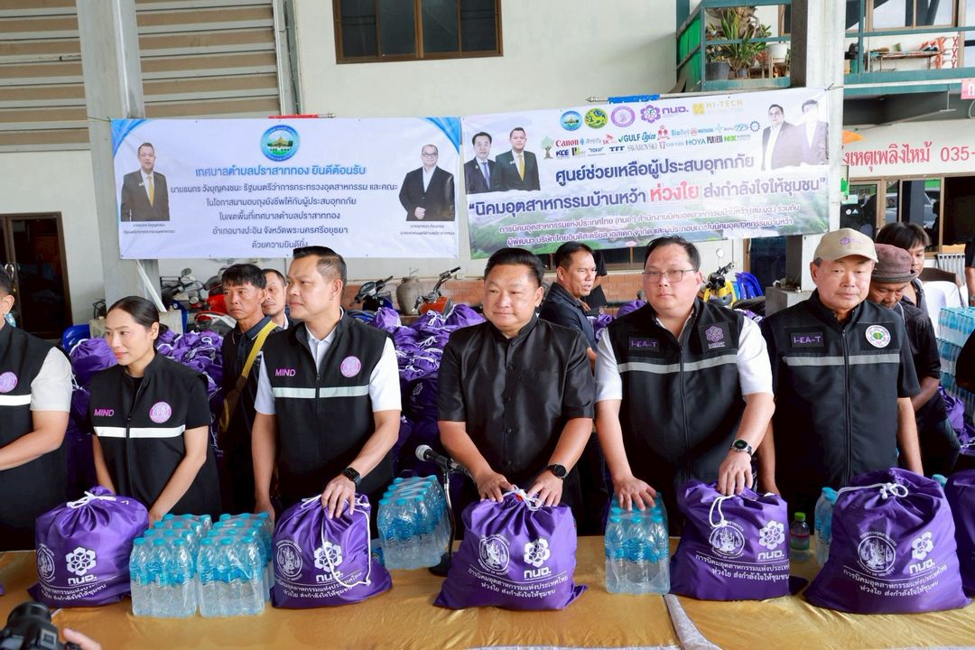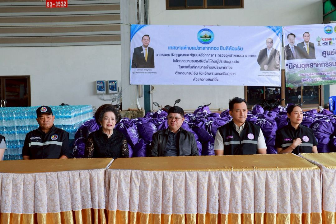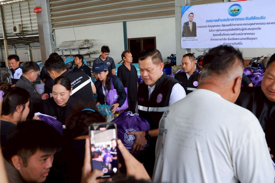 ในการนี้ รัฐมนตรีว่าการกระทรวงอุตสาหกรรม และคณะได้ตรวจติดตามระดับน้ำและระบบระบายน้ำบริเวณสถานีสูบระบายน้ำคลองเปรมประชากรเหนือ พร้อมรับฟังรายงานสถานการณ์อุทกภัยในพื้นที่ เพื่อประเมินความเสี่ยงที่อาจส่งผลกระทบต่อภาคอุตสาหกรรมและชุมชน พร้อมกันนี้ รัฐมนตรีช่วยว่าการกระทรวงอุตสาหกรรมได้เป็นประธานมอบถุงยังชีพ เพื่อช่วยบรรเทาความเดือดร้อนเบื้องต้นให้แก่ครัวเรือนที่ได้รับผลกระทบจากอุทกภัย ณ เทศบาลตำบลปราสาททอง และหมู่ 1 ตำบลบ้านเลน อำเภอบางปะอิน จังหวัดพระนครศรีอยุธยา เพื่อมอบถุงยังชีพแก่ประชาชนที่ได้รับผลกระทบ