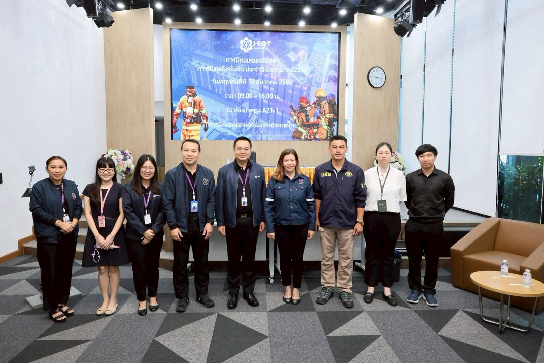 วันที่ 18 ธันวาคม 2568 เวลา 09.00 น. นางสาวนลินี กาญจนามัย ในนามประธานคณะกรรมการ SSHE ให้เกียรติเป็นประธานกล่าวเปิดอบรมหลักสูตร “การฝึกซ้อมดับเพลิงและอพยพหนีไฟประจำปี 2569 กนอ. สำนักงานใหญ่” เพื่ออบรมให้ความรู้เกี่ยวกับการดับเพลิงและอพยพหนีไฟ (ภาคทฤษฎีและปฏิบัติ) โดยมี นายอนุชิต สวัสดิ์ ผช.ผวก.พย. นายปรามสยบ ภูมิพาณิชย์ ผอ.กปอ. ตลอดจนพนักงานและลูกจ้าง กนอ. เข้ารับการอบรม จำนวน 80 คน
