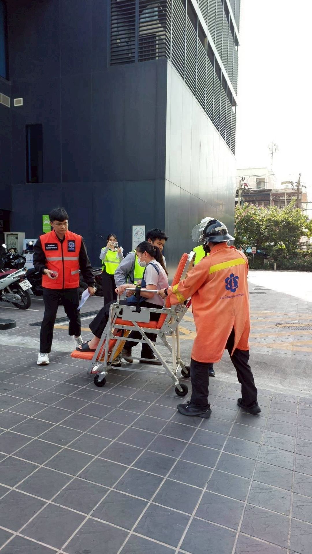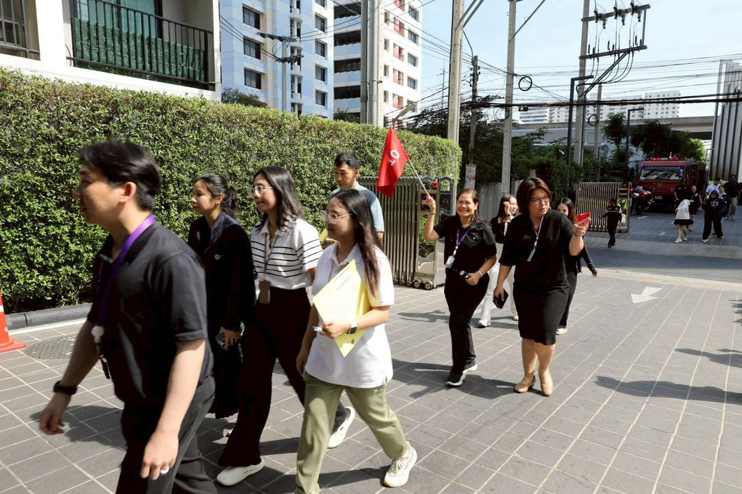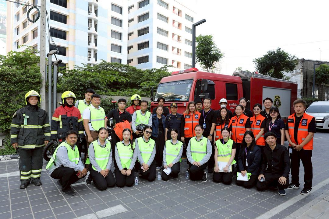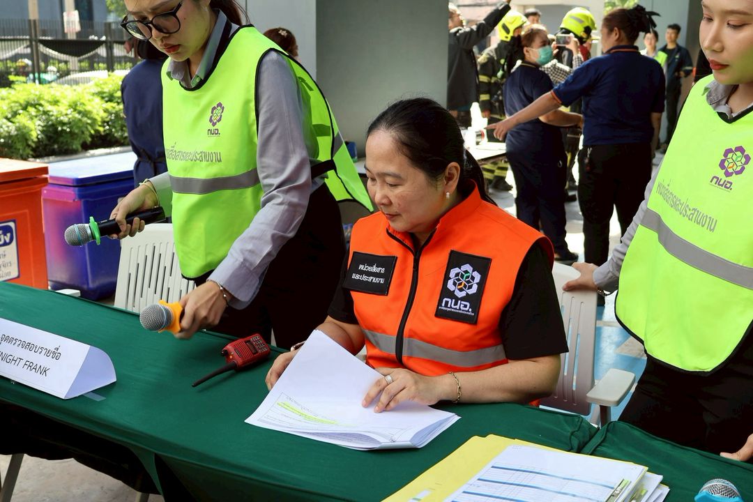 ต่อมาในเวลา 11.00 น. ได้ทำการฝึกซ้อมอพยพหนีไฟอาคาร กนอ. สำนักงานใหญ่ โดยนางสาวนลินี กาญจนามัย รผก.บร. ทำหน้าที่เป็นผู้อำนวยการภาวะฉุกเฉิน และมีผู้บริหารและพนักงาน กนอ. ลูกจ้าง ตลอดจนหน่วยงานภายนอกและผู้มาติดต่อ จำนวน 300 ท่าน เข้าร่วมการฝึกซ้อมอพยพหนีไฟเพื่อเป็นการเตรียมความพร้อมในการตอบโต้เหตุภาวะฉุกเฉินกรณีอัคคีภัย ตามแผนป้องกันและบรรเทาภัย กนอ. สำนักงานใหญ่ โดยมีผู้เชี่ยวชาญและเจ้าหน้าที่จากสถานีดับเพลิงสุทธิสาร สถานีดับเพลิงลาดยาว สถานีดับเพลิงพหลโยธิน และผู้เชี่ยวชาญจากสมาคมผู้ตรวจสอบอาคาร เป็นวิทยากรในการอบรมและเข้าสังเกตการณ์ฝึกซ้อมอพยพหนีไฟดังกล่าว