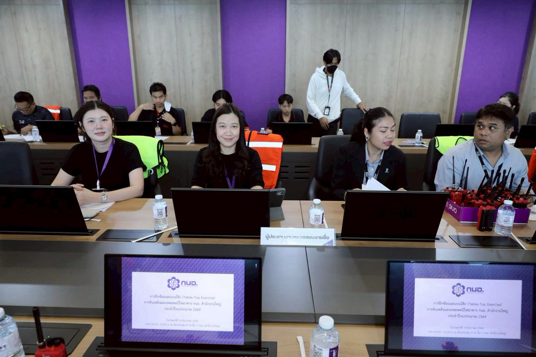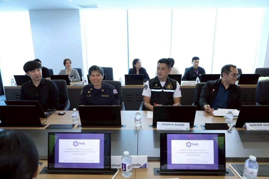 และในวันที่ 19 ธันวาคม 2568 เวลา 09.00 น. ได้ทำการเตรียมความพร้อมและฝึกซ้อมแผนฯ บนโต๊ะ (Table Top Exercise: TTX) ณ ห้องประชุม A7-1 โดยนางสาวนลินี กาญจนามัย รผก.บร. ร่วมกับหน่วยงานที่เกี่ยวข้องอันประกอบด้วย กปอ., กอส., กทบ., กสอ. และบริษัท ไนท์แฟรงค์ ชาร์เตอร์ (ประเทศไทย) จํากัด