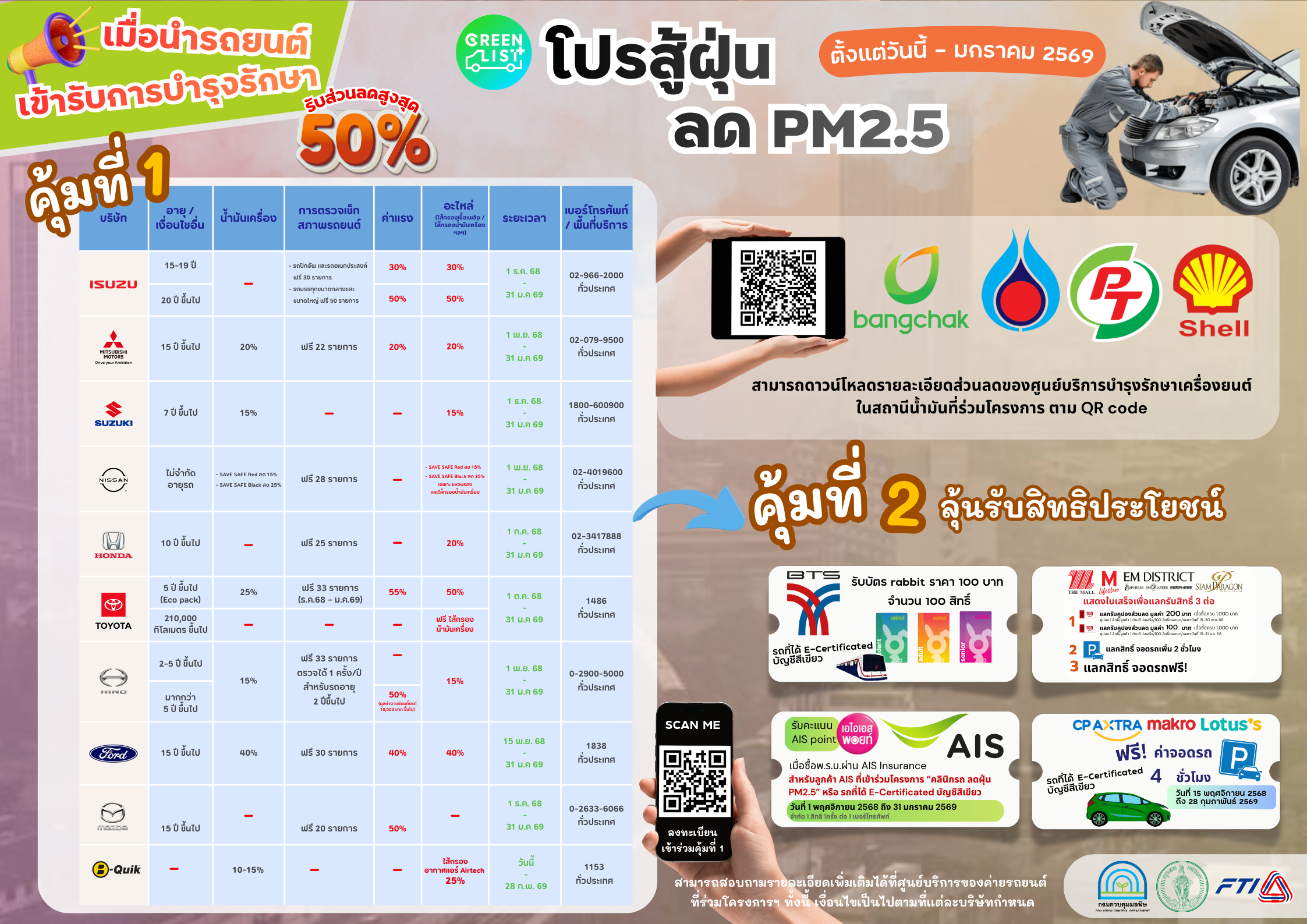 Link ค้นหาสาขาที่เข้าร่วมโครงการคลินิกรถ ลดฝุ่น PM2.5