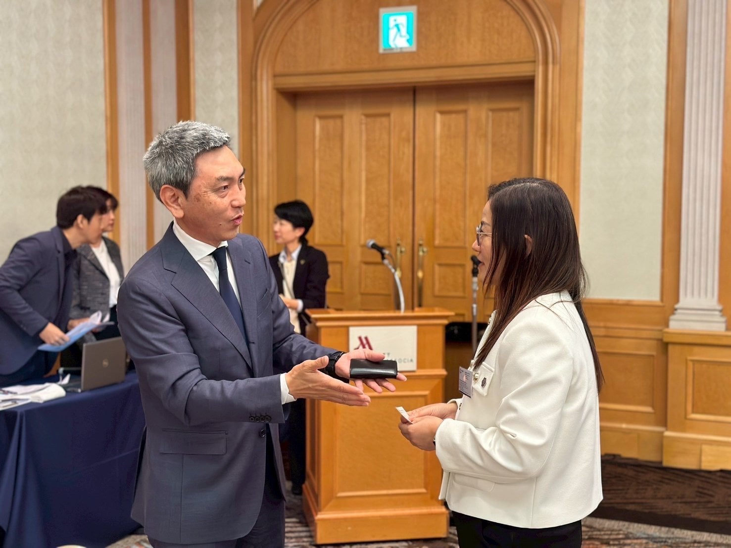 วันอังคารที่ 8 เมษายน 2568 เข้าร่วมกิจกรรม Nagoya - Thai Japan Business Matching การจับคู่ธุรกิจภายในงานผช.ผวก.บร. ได้กล่าวเชิญชวนนักลงทุนญี่ปุ่น และสร้างความมั่นใจการลงทุนในนิคมอุตสาหกรรม โดยมีผู้บริหารของหน่วยงานไทย-ญี่ปุ่น เข้าร่วมงาน อาทิ นางสาวศุธาศินี สมิตร ที่ปรึกษาด้านการลงทุน BOI ,Mr. Hirano Shuichi, Director-General, Chubu Hokuriku Regional Head Office Chief Director, JETRO Nagoya และ Ms. Watanabe Yuka, Chairman, Aichi Industry Promotion Organization (AIBSC)