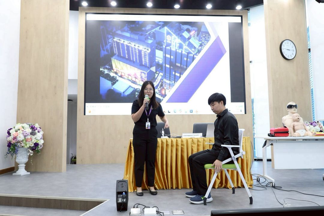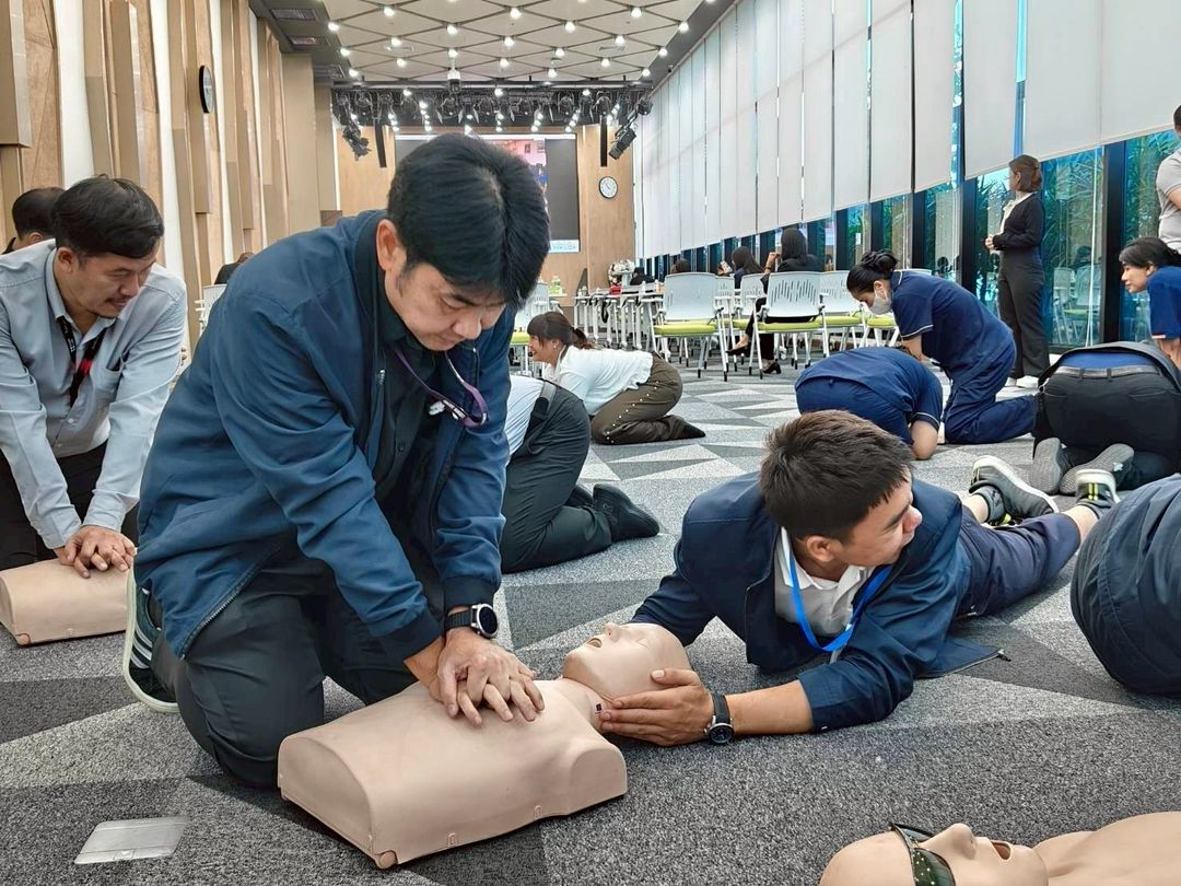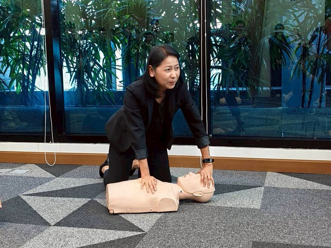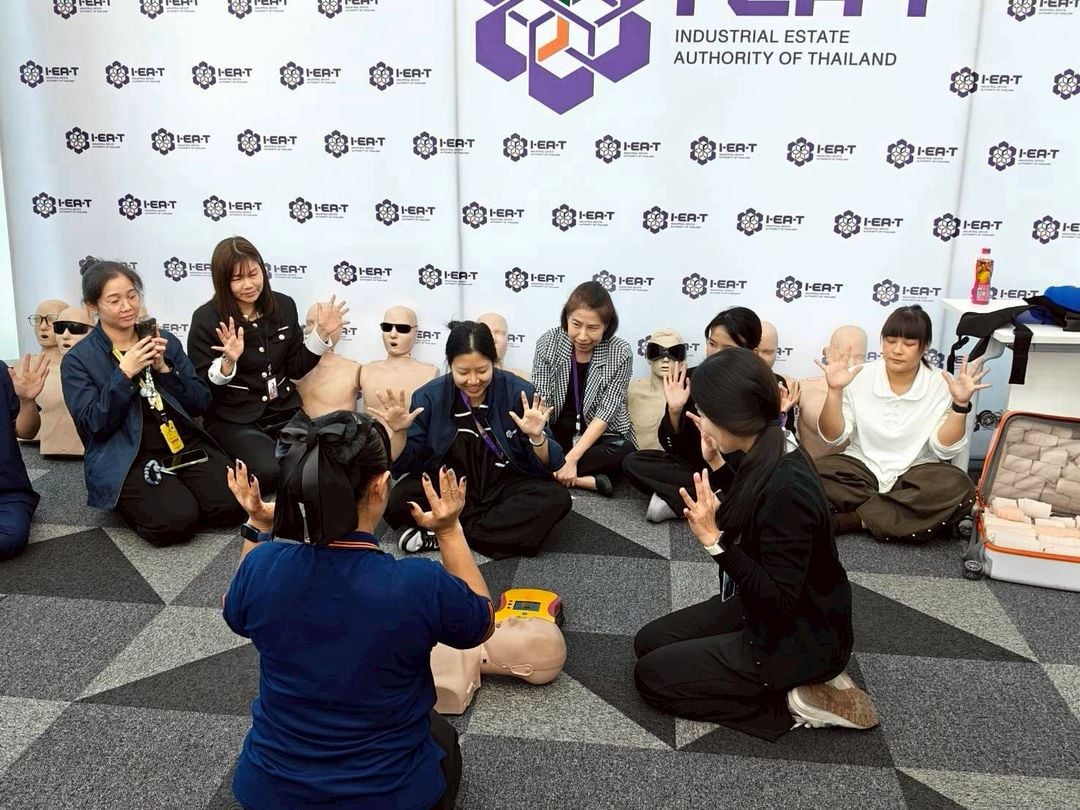 วันที่ 1 และวันที่ 2 ธันวาคม 2568 เวลา 09.00 น. นางสาวนลินี กาญจนามัย ประธานคณะกรรมการความปลอดภัยฯ เป็นประธานกล่าวเปิดการอบรมหลักสูตร “ปฐมพยาบาลเบื้องต้น กู้ชีพขั้นพื้นฐาน และการใช้เครื่องกระตุกไฟฟ้าหัวใจอัตโนมัติ (AED)” จำนวน 2 รุ่น ในระหว่างวันที่ 1 - 2 ธันวาคม 2568 ณ ห้องประชุม A21-1 โดยมีวัตถุประสงค์เพื่อให้พนักงาน ลูกจ้าง/ Outsource ที่ปฏิบัติงานในอาคารสำนักงาน กนอ. ได้มีความรู้และเตรียมความพร้อมรับมือกับสถานการณ์เกิดเหตุฉุกเฉิน ตลอดจนมีความเข้าใจขั้นตอนการใช้อุปกรณ์ต่าง ๆ ในการปฐมพยาบาลเบื้องต้นและกู้ชีพขั้นพื้นฐาน การช่วยเหลือ การเคลื่อนย้ายผู้ป่วย/ผู้บาดเจ็บ ตลอดจนการใช้เครื่องกระตุกไฟฟ้าหัวใจอัตโนมัติ (AED) ได้อย่างถูกต้องทันท่วงที เพื่อป้องกันไม่ให้เกิดผลเสียหายหรือลดผลกระทบให้เสียหายในระดับน้อยที่สุด