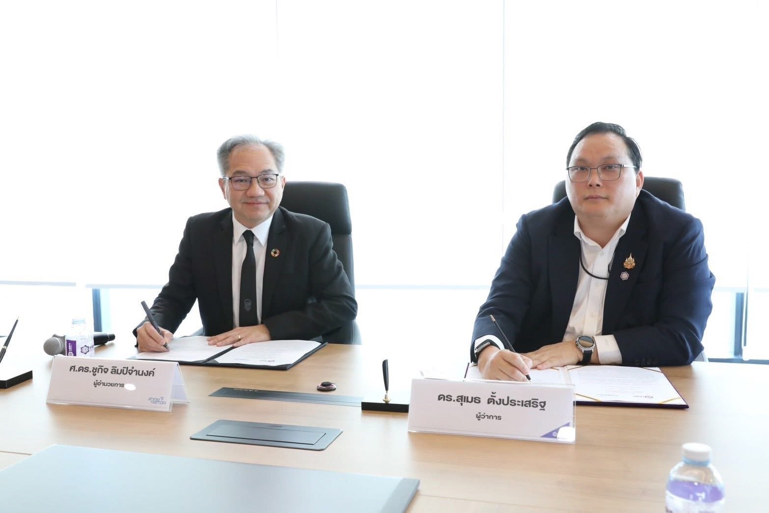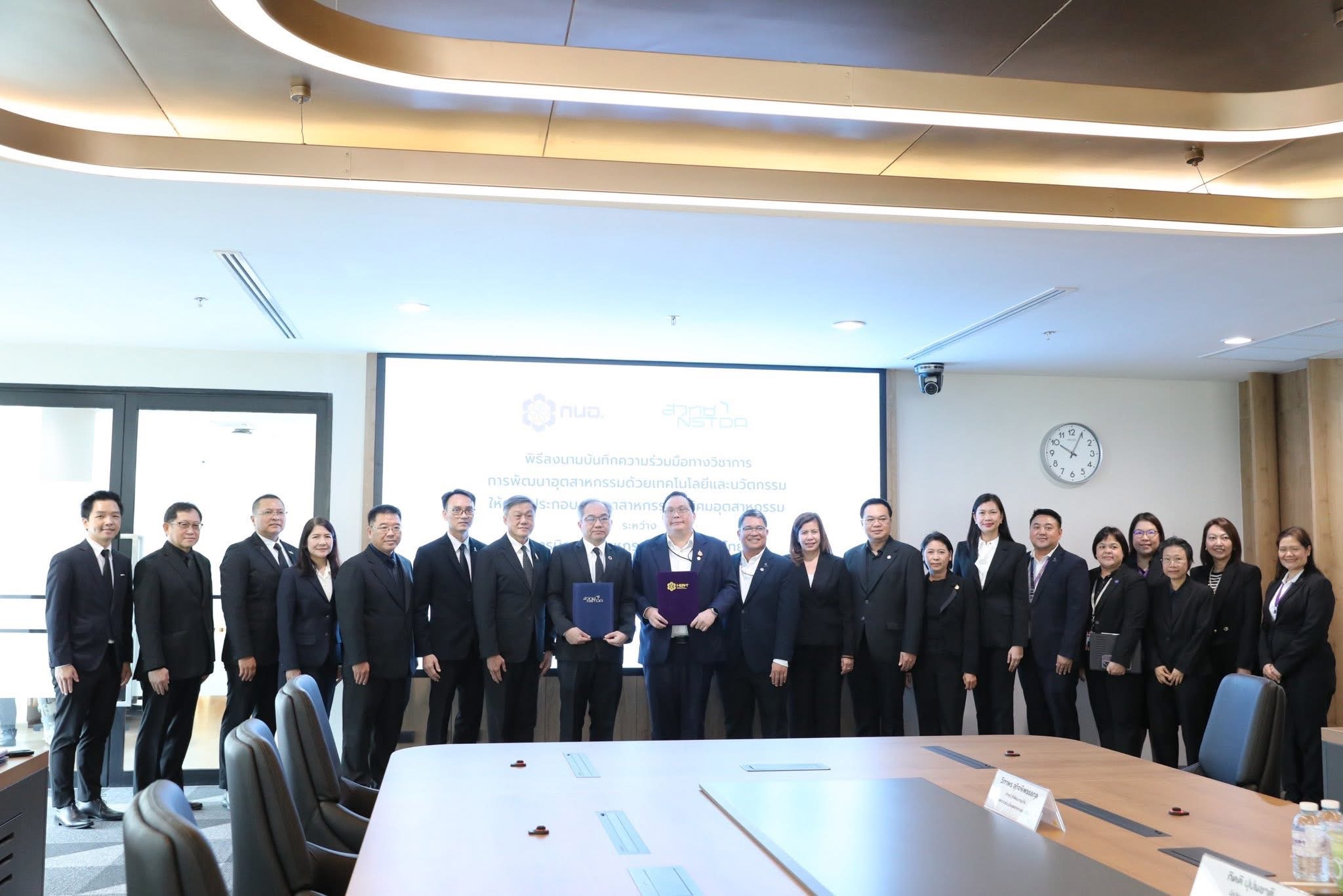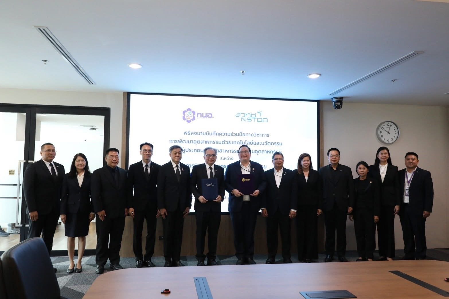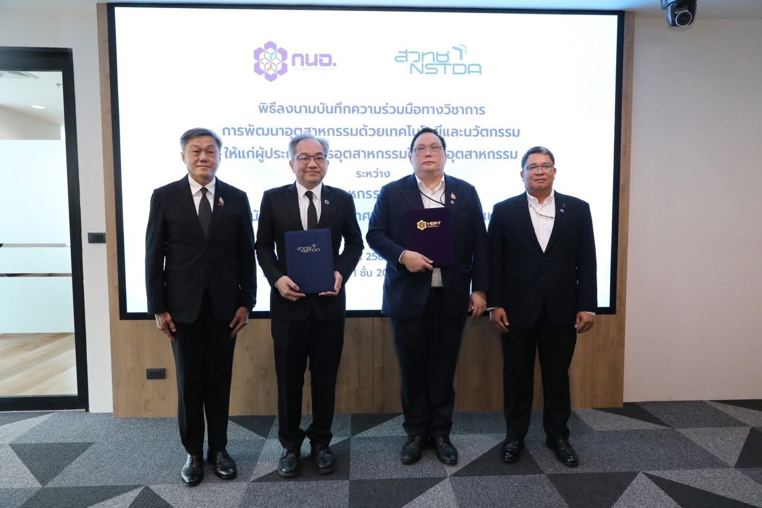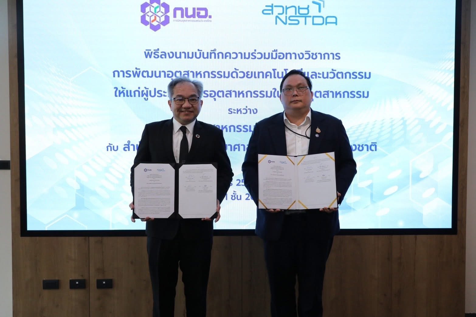 กรุงเทพฯ วันที่ 24 ก.พ.69 - นายสุเมธ ตั้งประเสริฐ ผู้ว่าการ กนอ. ร่วมพิธีลงนามบันทึกความร่วมมือทางวิชาการการพัฒนาอุตสาหกรรมด้วยเทคโนโลยีและนวัตกรรมให้แก่ผู้ประกอบการอุตสาหกรรมในนิคมอุตสาหกรรม ร่วมกับ ศาสตราจารย์ ดร.ชูกิจ ลิมปิจำนงค์ ผู้อำนวยการสำนักงานพัฒนาวิทยาศาสตร์และเทคโนโลยี (สวทช.) โดยมี นายเริงฤทธิ์ กุศลกรรมบถ รองผู้ว่าการ (ประจำสำนักผู้ว่าการ) กนอ. และ ดร.วุฒิ ด่านกิตติกุล รองผู้อำนวยการ สวทช. เป็นพยานในพิธี