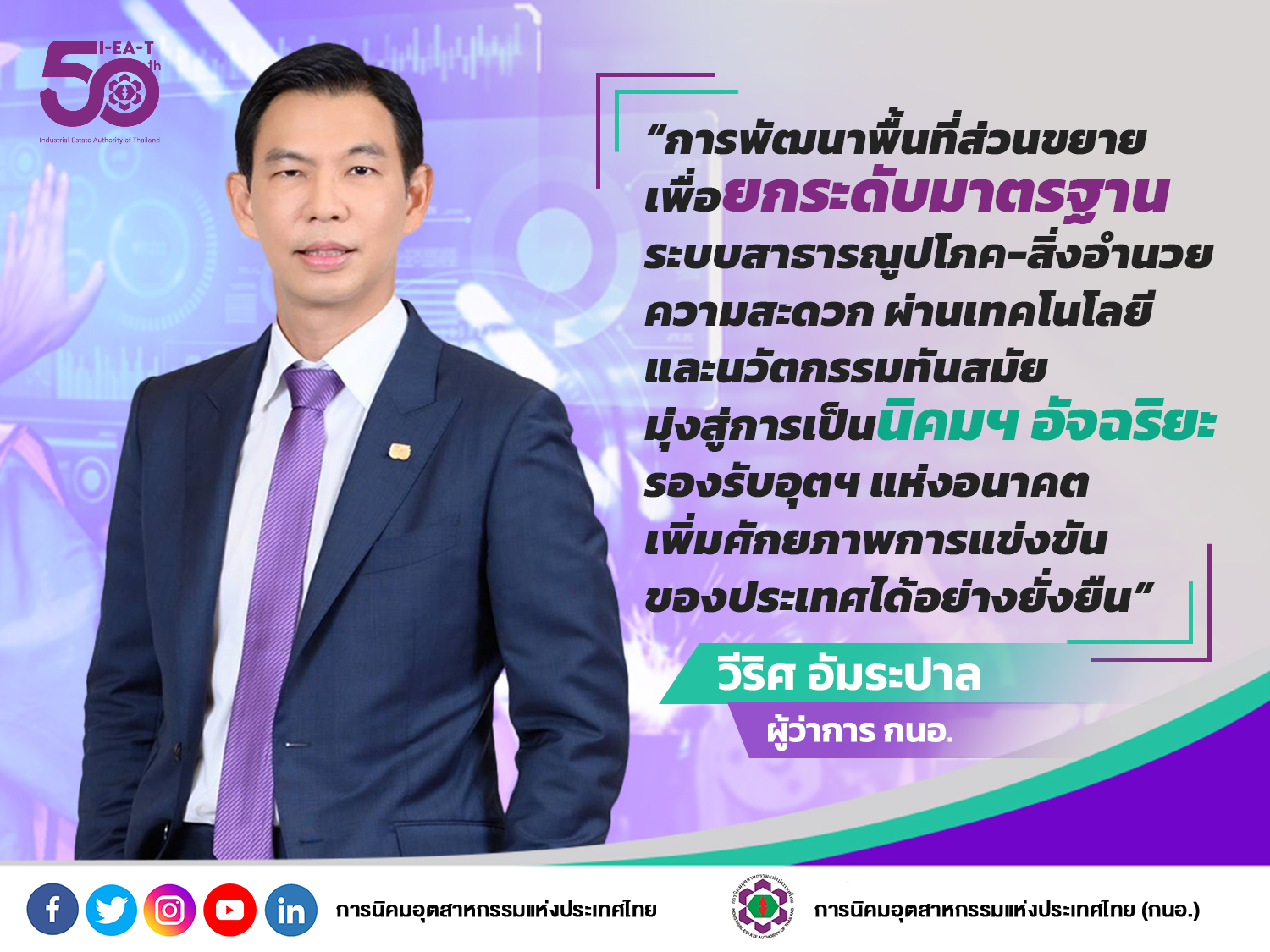 “การพัฒนาพื้นที่ส่วนขยายนี้ ส่งเสริมให้เกิดการยกระดับมาตรฐานระบบสาธารณูปโภคและสิ่งอำนวยความสะดวกของนิคมอุตสาหกรรม โดยใช้ประโยชน์จากเทคโนโลยีและนวัตกรรมที่ทันสมัย สู่การเป็นนิคมอุตสาหกรรมอัจฉริยะ (SMART I.E.) พื้นที่ประกอบการอัจฉริยะ (SMART I.Z.) เพื่อเป็นทางเลือกให้กับผู้พัฒนานิคมอุตสาหกรรมและผู้ประกอบการ สร้างความได้เปรียบในกระบวนการผลิต สร้างมูลค่าเพิ่มให้กับผลิตภัณฑ์ รองรับอุตสาหกรรมแห่งอนาคตที่ใช้เทคโนโลยีขั้นสูง ลดความสิ้นเปลืองพลังงานและความสูญเสียของทรัพยากรที่มีจำกัด เพิ่มศักยภาพการแข่งขันของประเทศอย่างยั่งยืน นอกจากนี้ ยังได้รับการยกเว้นภาษีเงินได้นิติบุคคล 8 ปี และหากอยู่ในพื้นที่เขตพัฒนาพิเศษภาคตะวันออก (อีอีซี) จะได้รับการลดหย่อนภาษีเงินได้นิติบุคลเพิ่มอีก 50% เป็นระยะ 5 ปีอีกด้วย” นายวีริศ กล่าว