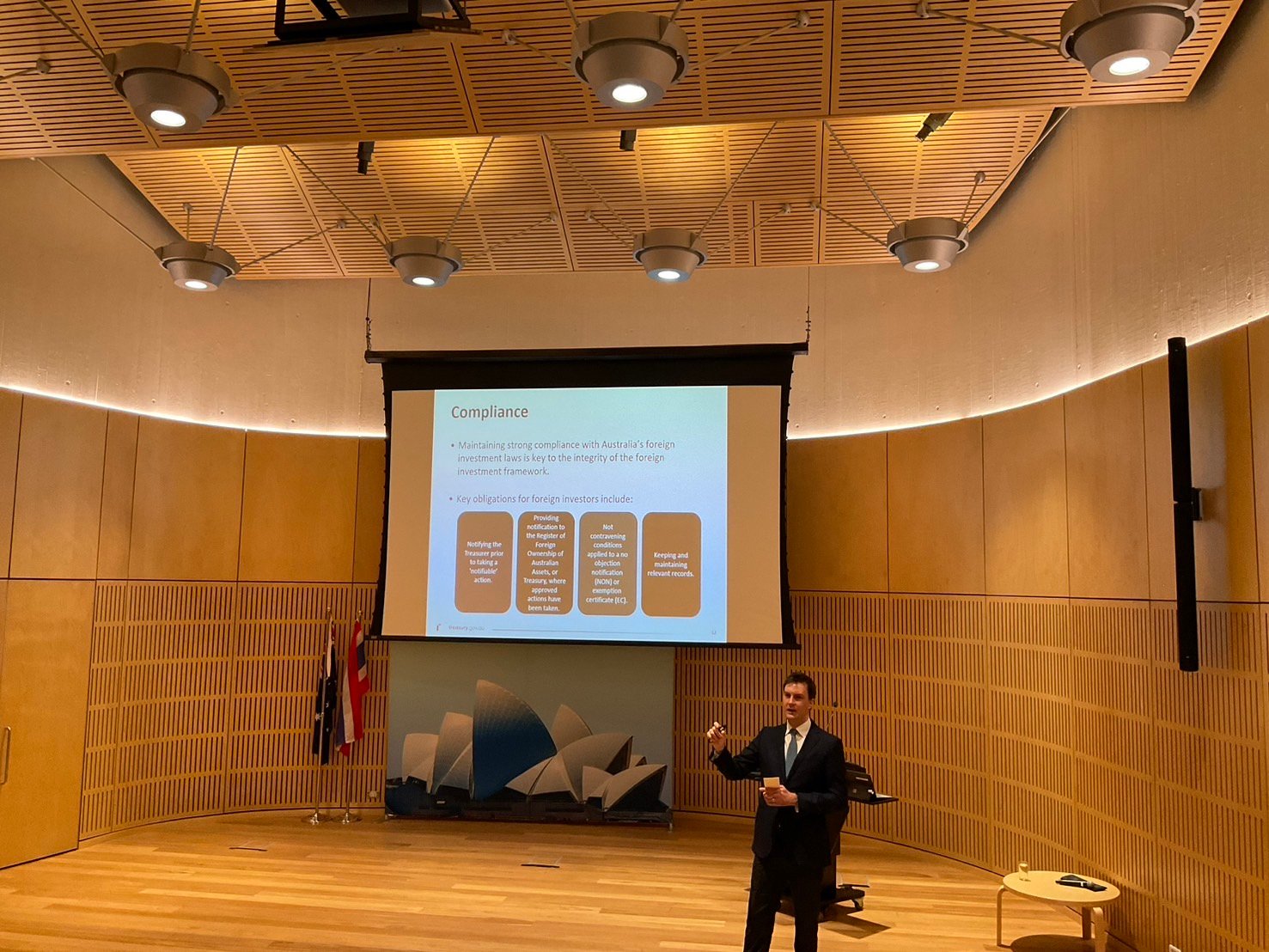 วันพฤหัสบดีที่ 30 พฤษภาคม 2567 เวลา 15.00 น. นางสาววิชชุดา ศรีมาขจร ผู้ช่วยผู้ว่าการสายงานบริหารได้รับมอบหมายให้เข้าร่วมการประชุมแลกเปลี่ยนความคิดเห็นเรื่องการปฏิรูปกรอบการลงทุนของต่างชาติในออสเตรเลีย และการแลกเปลี่ยนข้อมูลด้านการลงทุนระหว่างไทยและออสเตรเลีย นำโดย Mr Cosimo Thawley. Senior Treasury Representative to Southeast Asia การประชุมมีหน่วยงานราชการไทยและภาคเอกชนเข้าร่วมประมาณ 30 คน ณ สถานเอกอัครราชทูตออสเตรีย ประจำประเทศไทย