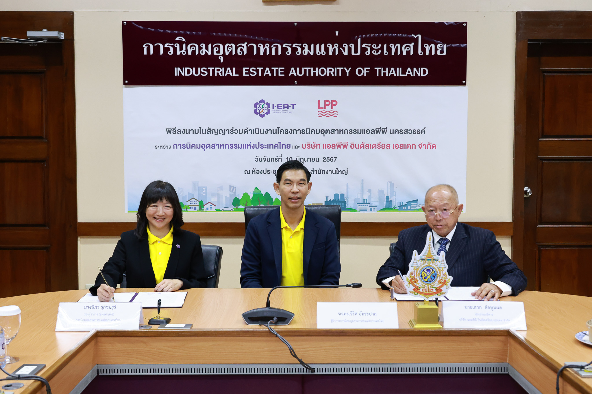 วันที่ 10 มิถุนายน 2567 เวลา 13.00 น. รศ.ดร.วีริศ อัมระปาล ผู้ว่าการ กนอ. เป็นประธานในพิธีลงนามสัญญาร่วมดำเนินงานจัดตั้งนิคมฯ แอลพีพี นครสวรรค์ ระหว่าง กนอ. และ บ. แอลพีพี อินดัสเตรียล เอสเตท จำกัด โดยนางนิภา รุกขมธุร์ รองผู้ว่าการ (ยุทธศาสตร์) และนายเสวก ล้อพูนผล ประธานบริหารบริษัทฯ ลงนามในสัญญาร่วมกัน โดยมีนางปนัดดา เย็นตระกูล ผู้ช่วยผู้ว่าการ (ยุทธศาสตร์) ผู้บริหาร กนอ. ผู้บริหารบริษัทฯ พร้อมด้วยนักข่าวและสื่อมวลชนหลายสำนักเข้าร่วม