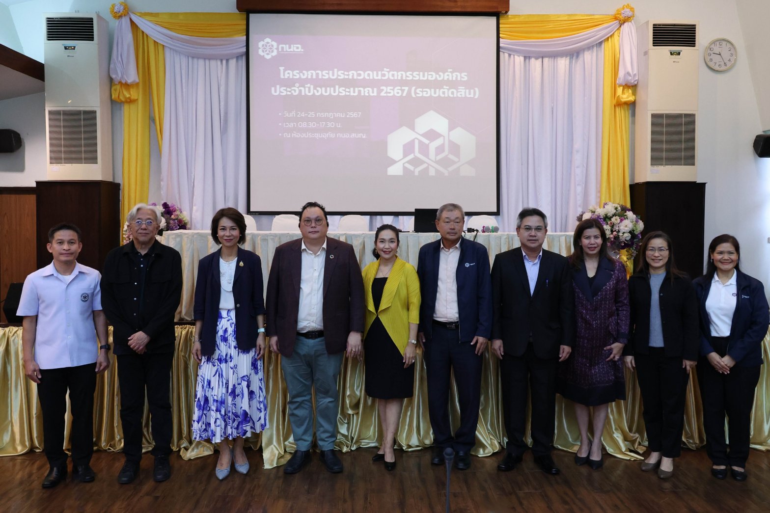 วันที่ 24-25 กรกฎาคม 2567 รองศาสตราจารย์ วีริศ อัมระปาล ผวก. กนอ. มอบหมายให้ นางสาวนลินี กาญจนามัย รผก.บร. เป็นประธานโครงการประกวดนวัตกรรมประจำปี 2567 ซึ่งได้รับเกียรติจาก นายสุเมธ ตั้งประเสริฐ กรรมการ กนอ. ให้เกียรติกล่าวเปิดงาน โดยมีคณะกรรมการตัดสินฯ เป็นผู้ทรงคุณวุฒิและผู้เชี่ยวชาญด้านนวัตกรรมจากหน่วยงานภายนอก ได้แก่ ผศ.ดร.พงศ์พันธ์ อนันต์วรณิชย์ หัวหน้าโครงการศูนย์นวัตกรรม จุฬาลงกรณ์มหาวิทยาลัย ดร.พณชิต กิตติปัญญางาม ประธานกรรมการผู้จัดการใหญ่และผู้ร่วมก่อตั้ง บริษัท แอ็คโคเมท จำกัด ดร.ศุภธิดา พรหมพยัคฆ์ CEO & Founder The S Curve นางสาวไปยดา หาญชัยสุขสกุล รองผู้อำนวยการศูนย์ความเป็นเลิศด้านชีววิทยาศาสตร์ (องค์การมหาชน) และนายเอก โอฐน้อย ผู้อำนวยการดิจิทัลการแพทย์ฉุกเฉินแห่งชาติ สถาบันการแพทย์ฉุกเฉินแห่งชาติ และได้รับเกียรติจากนายประทีป เอ่งฉ้วน รผก.ปก.1 นายคณพศ ขุนทอง รผก.ปก.3 นางสาววิชชุดา สีมาขจร ผช.ผวก.บร. นายอนุชิต สวัสดิ์ ผช.ผวก.พย. และ นายธีรวุฒิ เจริญสุข ผช.ผวก.ปก.1 รวมทั้งผู้บริหารและพนักงาน กนอ. เข้าร่วมงาน