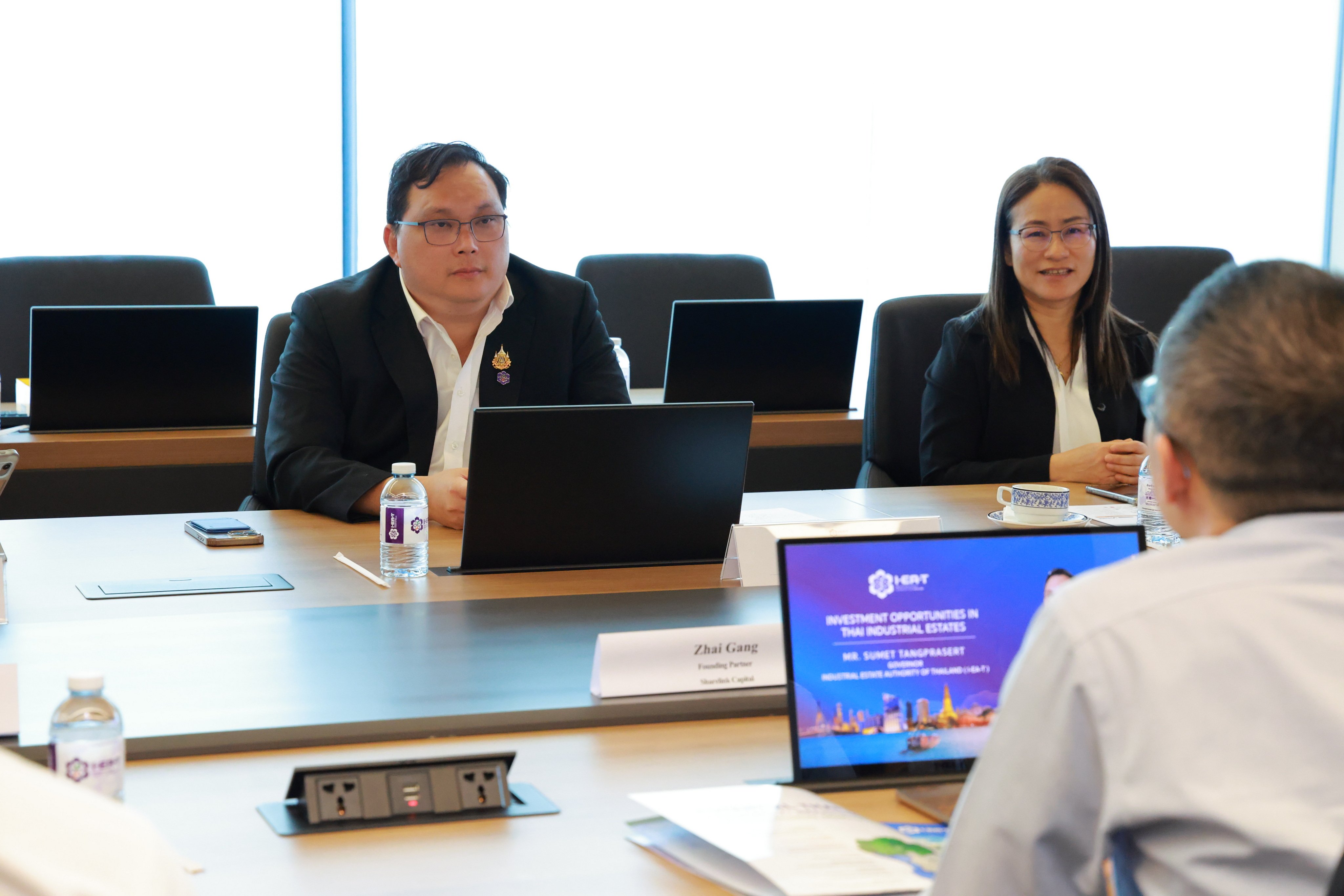 วันพฤหัสบดีที่ 6 พฤศจิกายน 2568 นายสุเมธ ตั้งประเสริฐ ผวก. นางสาวนลินี กาญจนามัย รผก.บร. นางสาววิชชุดา สีมาขจร ผช.ผวก.บร. นางสาวรักชริน ทองหงส์ ผอ.ฝตล. และทีมกองการตลาดให้การต้อนรับนักลงทุนกว่า 20 บริษัท จาก Sharelink Capital ในโอกาสเยือนประเทศไทยเพื่อศึกษาลู่ทางการลงทุน ทั้งนี้ กนอ. ได้มีการกล่าวบรรยายภาพรวมการบริหารจัดการ พื้นที่นิคมอุตสาหกรรมทั่วประเทศไทย สาธารณูปโภค สิทธิประโยชน์ของ กนอ. และหน่วยงานพันธมิตร เพื่อประกอบการตัดสินใจการลงทุนในประเทศไทย