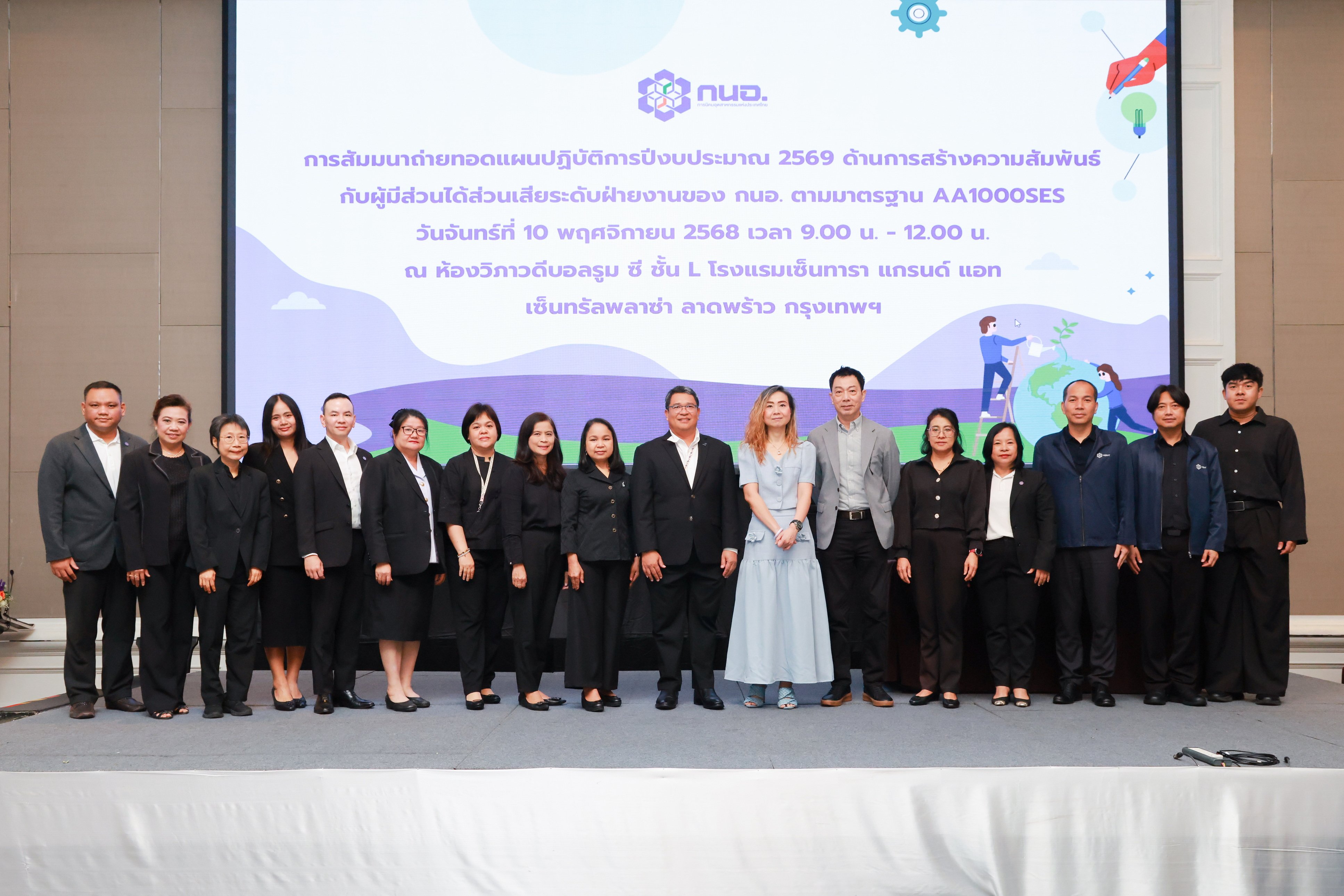 วันจันทร์ที่ 10 พฤศจิกายน 2568 เวลา 9.00 น. - 12.00 น. การจัดสัมมนาในครั้งนี้มีวัตถุประสงค์เพื่อสื่อสารแผนปฏิบัติการปีงบประมาณ 2569 ด้านการสร้างความสัมพันธ์กับผู้มีส่วนได้ส่วนเสียระดับฝ่ายงาน ตามมาตรฐาน AA1000SES ให้หน่วยงานที่เกี่ยวข้องรับทราบ และ ทำ Workshop ในการนำแผนปฏิบัติการปีงบประมาณ 2569 ด้านการสร้างความสัมพันธ์กับผู้มีส่วนได้ส่วนเสียระดับฝ่ายงานของ กนอ. ตามมาตรฐาน AA1000SES สู่การปฏิบัติจริง (Deployment) เพื่อเสริมสร้างระบบการบริหารจัดการและสร้างความสัมพันธ์กับผู้มีส่วนได้ส่วนเสียของ กนอ. ให้เป็นไปตามมาตรฐานสากลและสอดคล้องกับหลักเกณฑ์การประเมินกระบวนการปฏิบัติงานและการจัดการ Enablers หมวดที่ 4 ด้านการมุ่งเน้นผู้มีส่วนได้ส่วนเสีย Module 1 : การมุ่งเน้นผู้มีส่วนได้ส่วนเสีย ที่ได้กำหนดให้รัฐวิสาหกิจนำมาตรฐานกระบวนการสร้างความสัมพันธ์กับผู้มีส่วนได้ส่วนเสีย AA1000 Stakeholder Engagement Standard (AA1000SES) ซึ่งเป็นหลักการสากลและกรอบการประเมินด้านการมุ่งเน้นผู้มีส่วนได้ส่วนเสีย เพื่อมุ่งเน้นให้รัฐวิสาหกิจมีการจัดการความสัมพันธ์กับผู้มีส่วนได้ส่วนเสียและเพื่อให้การบริหารจัดการองค์กรเป็นไปตามมาตรฐานสากลเป็นที่ยอมรับ โดยมีผู้เข้าร่วมสัมมนาฯ ประกอบด้วยผู้บริหารและพนักงานที่เกี่ยวข้องจำนวน 120 คน ณ ห้องวิภาวดีบอลรูม ซี ชั้น L โรงแรมเซ็นทารา แกรนด์ แอท เซ็นทรัลพลาซ่า ลาดพร้าว กรุงเทพฯ
