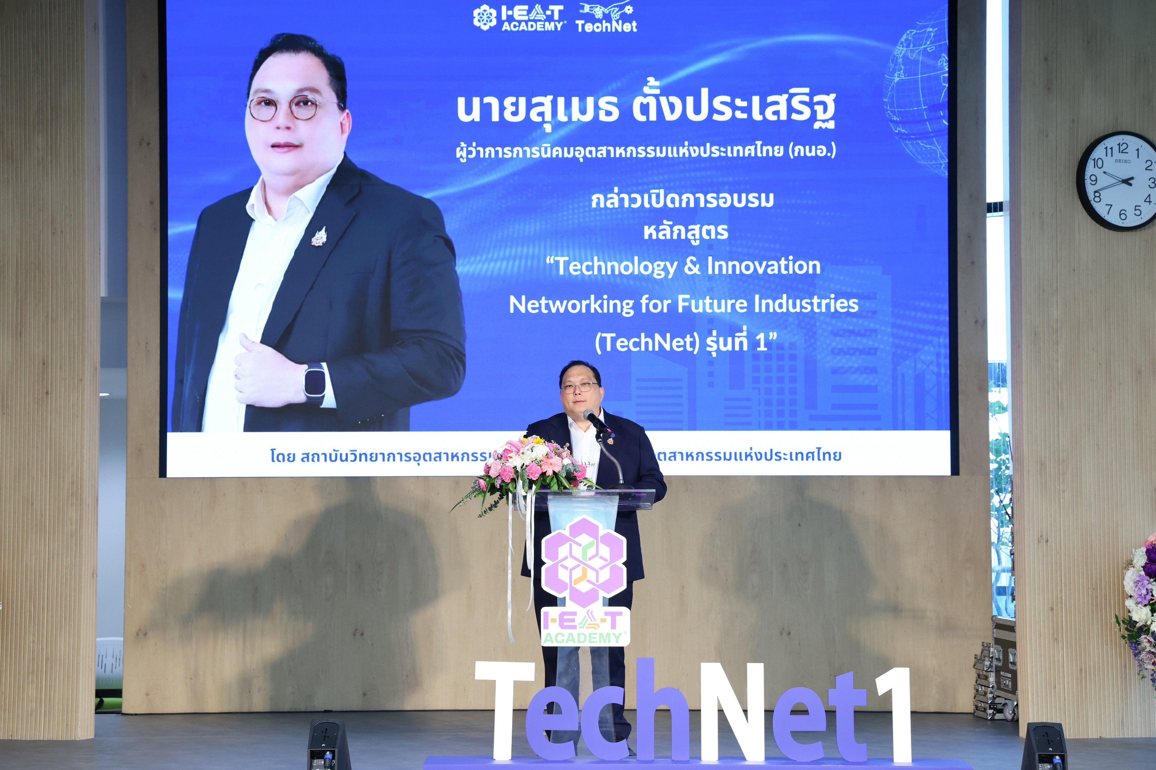 กรุงเทพฯ วันที่ 29 พฤศจิกายน 2568 - นายสุเมธ ตั้งประเสริฐ ผู้ว่าการการนิคมอุตสาหกรรมแห่งประเทศไทย (กนอ.) ให้เกียรติเป็นประธานในพิธีเปิดการอบรมหลักสูตร “เครือข่ายเทคโนโลยีและนวัตกรรมเพื่ออุตสาหกรรมอนาคต” (Technology & Innovation Networking for Future Industries) TechNet รุ่นที่ 1 โดยมี รศ.ดร.วีระพงษ์ แพสุวรรณ ประธานกรรมการสถาบันส่งเสริมการสอนวิทยาศาสตร์และเทคโนโลยี(สสวท.)และกรรมการพัฒนาวิทยาศาสตร์และเทคโนโลยีแห่งชาติ(กวทช.)นายปณตสรรค์ สูจยานนท์ รองอธิบดีกรมโรงงานอุตสาหกรรม พร้อมด้วยผู้บริหาร กนอ. ได้แก่ นายเริงฤทธิ์ กุศลกรรมบถ รผก.สผ. นายอัฏฐพล นิธิสุนทรวิทย์ ผช.ผวก.1 นางสาวนรรัตน์ รอดประเสริฐ ผช.ผวก.ปก.1 นายคงวุฒิ ยอดพยุง ผช.ผวก.ปก.2 เข้าร่วมงาน ณ ห้องประชุม A21-1 ชั้น 21 กนอ. สำนักงานใหญ่