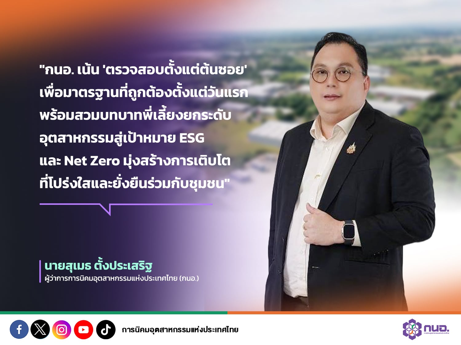 “การใช้ระบบตรวจสอบตั้งแต่ต้นซอย คือ หัวใจสำคัญในการกำกับดูแล เพราะเราต้องการให้โรงงานดำเนินการอย่างถูกต้องและมีมาตรฐานตั้งแต่วันแรกที่เริ่มประกอบกิจการจนถึงปัจจุบันและในอนาคต โดย กนอ. ไม่เพียงแต่ทำหน้าที่ ตรวจกำกับตามกฎหมายเท่านั้น แต่เราพร้อมเป็นพี่เลี้ยงและให้คำปรึกษาที่ช่วยยกระดับมาตรฐานอุตสาหกรรมไทยให้ก้าวสู่ระดับสากลตามหลักESG และเป้าหมายNet Zero เพื่อให้ภาคอุตสาหกรรมสามารถเติบโตเคียงคู่กับชุมชนได้อย่างยั่งยืนและโปร่งใส”ผู้ว่าการ กนอ. กล่าวปิดท้าย